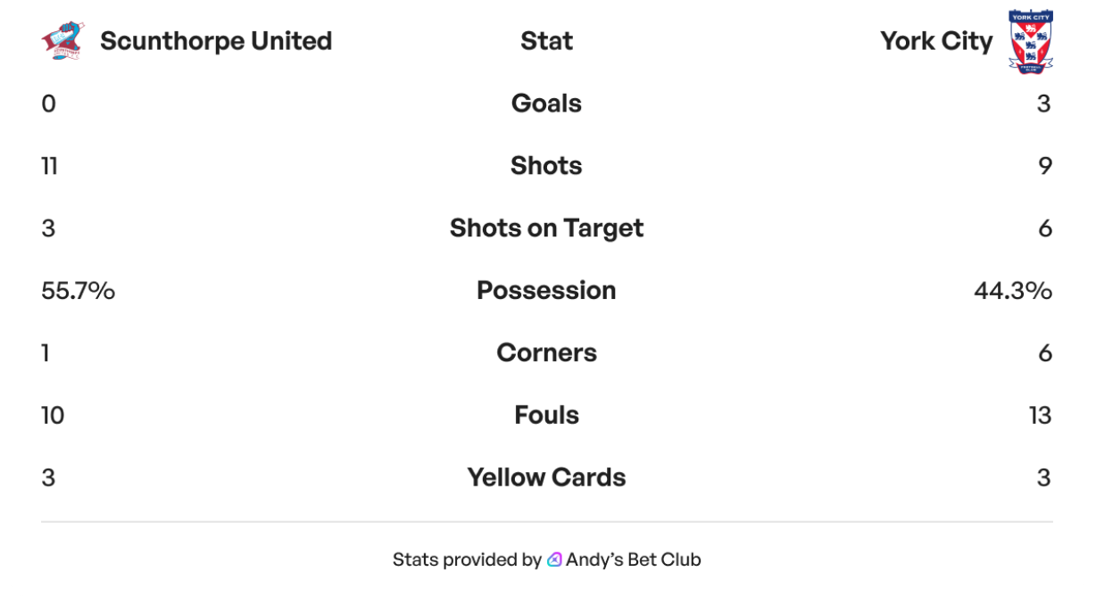 Andy’s Bet Club’s football analyst will break down Scunthorpe’s recent clash with York to see what the statistics indicate about how they might set up against Solihull.